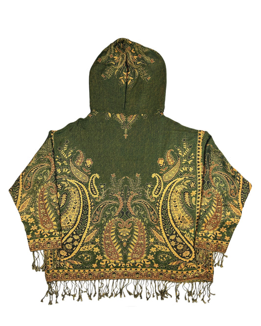 Light-weight hoodies made with woven pashmina scarves.