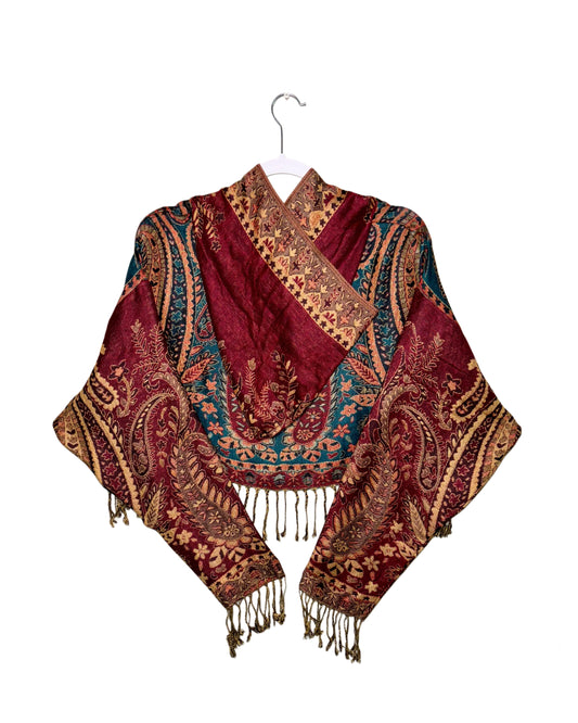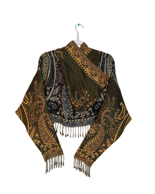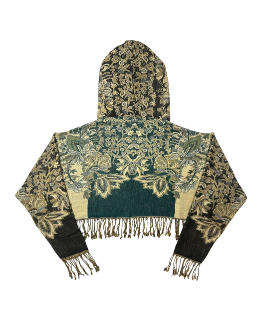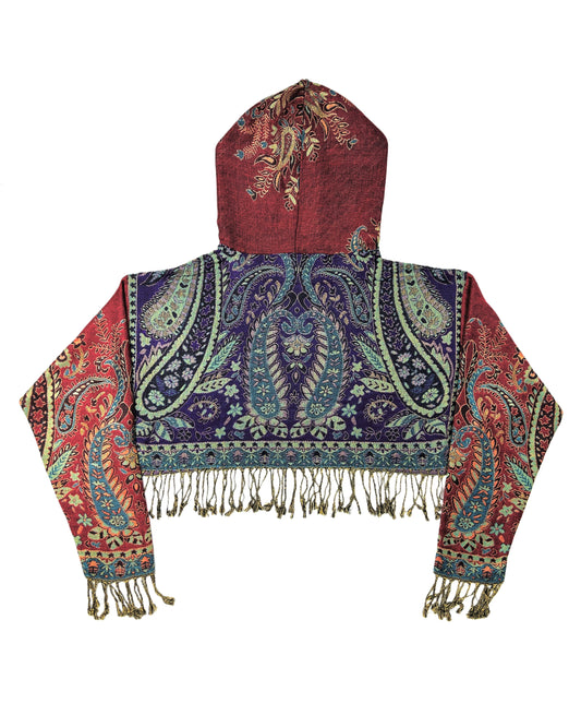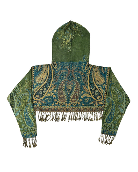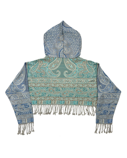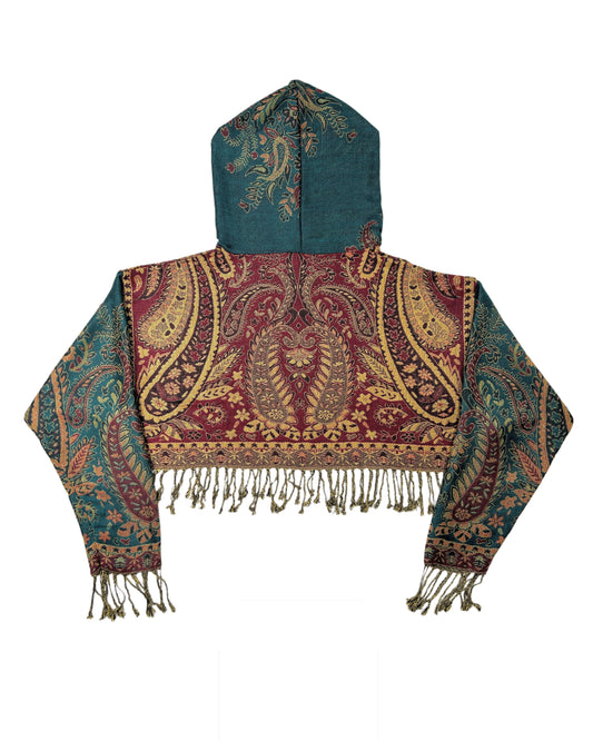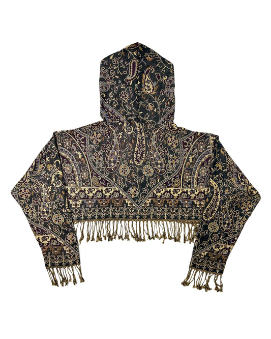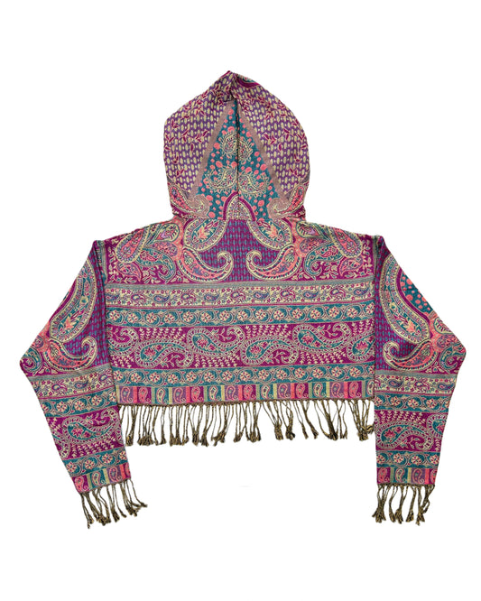 Light-weight cropped hoodies made out of pashmina scarves.