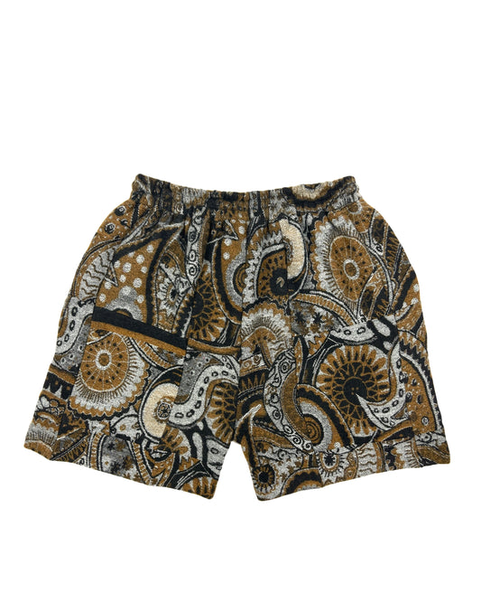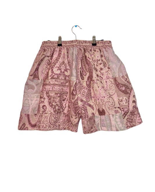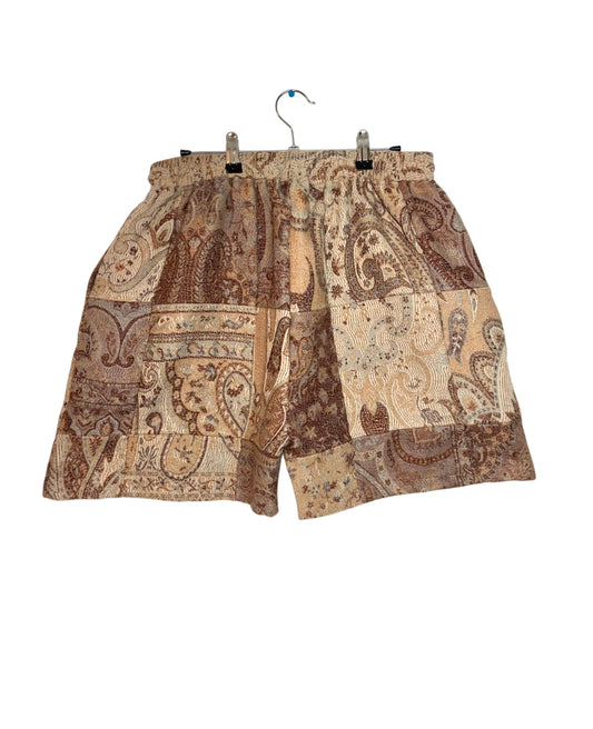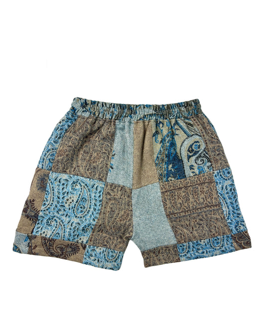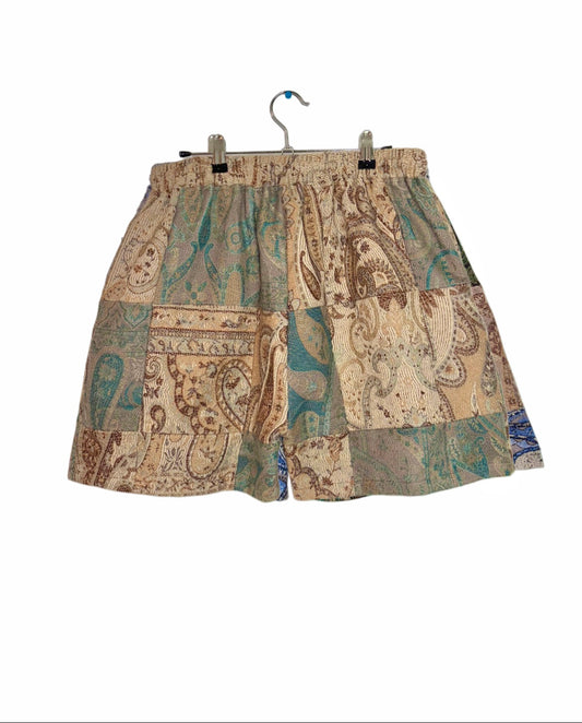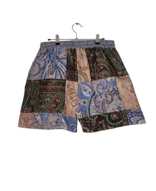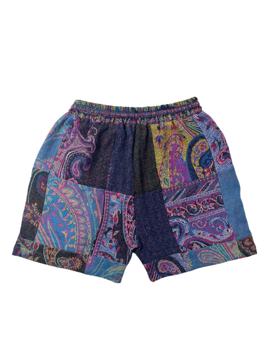 Cozy patchwork shorts made with flannel/fleece-like material.