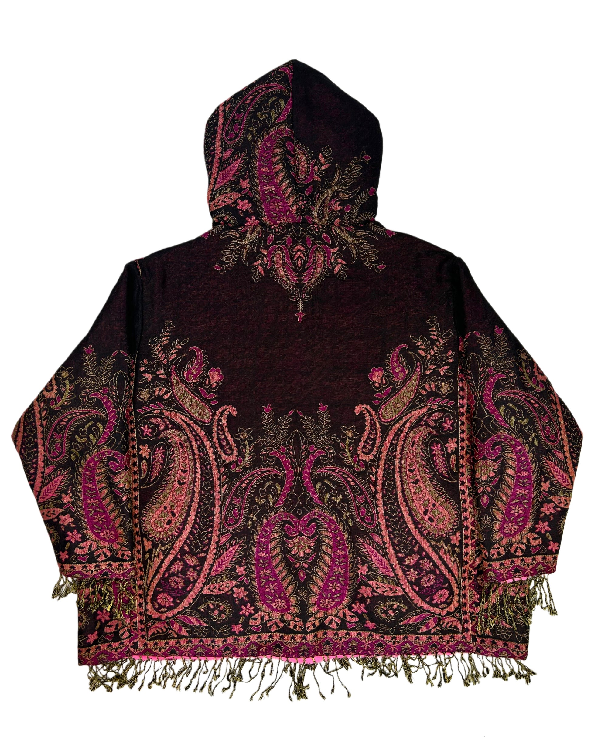 - Made with pashmina and faux rabbit fur with pockets and snap buttons