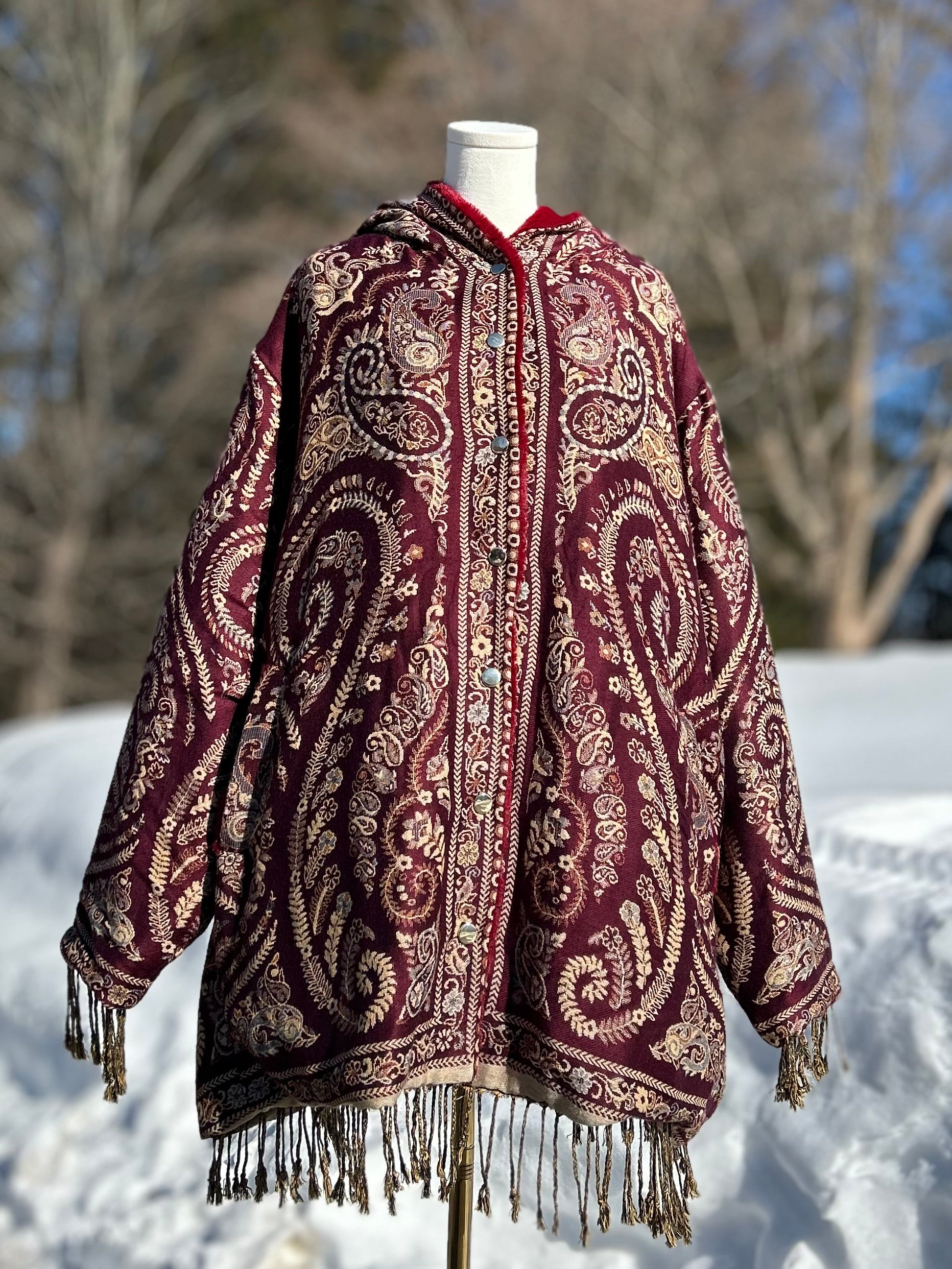- Made with pashmina and faux rabbit fur with pockets and snap buttons